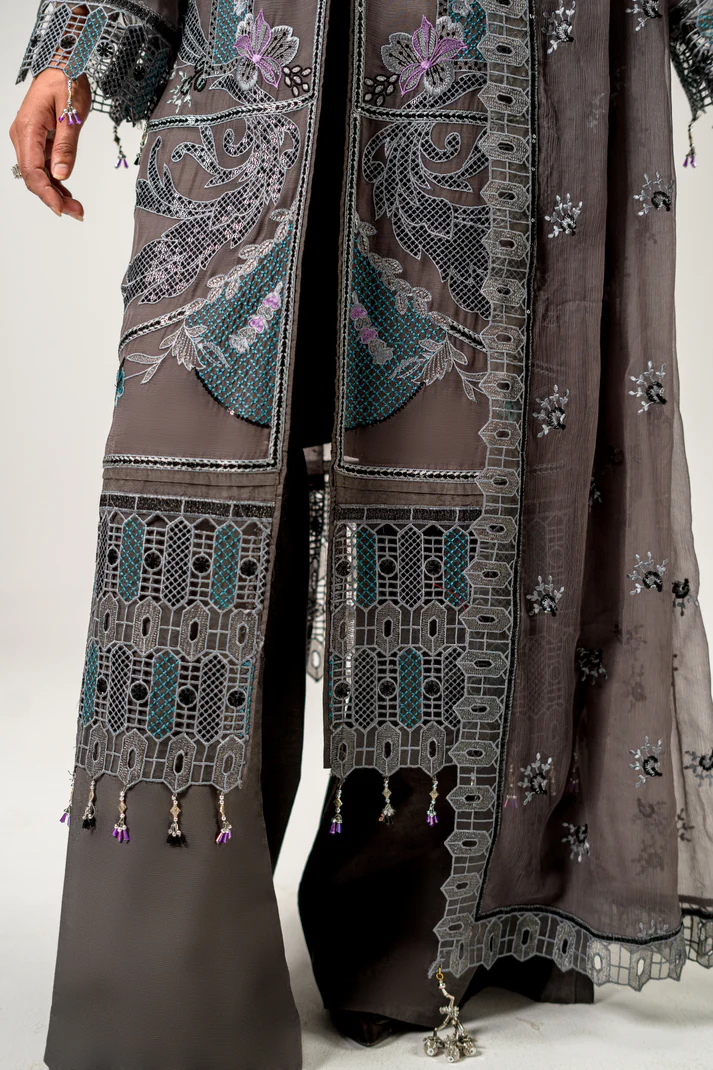 Embroidered chiffon front with l/r panal 1 yds