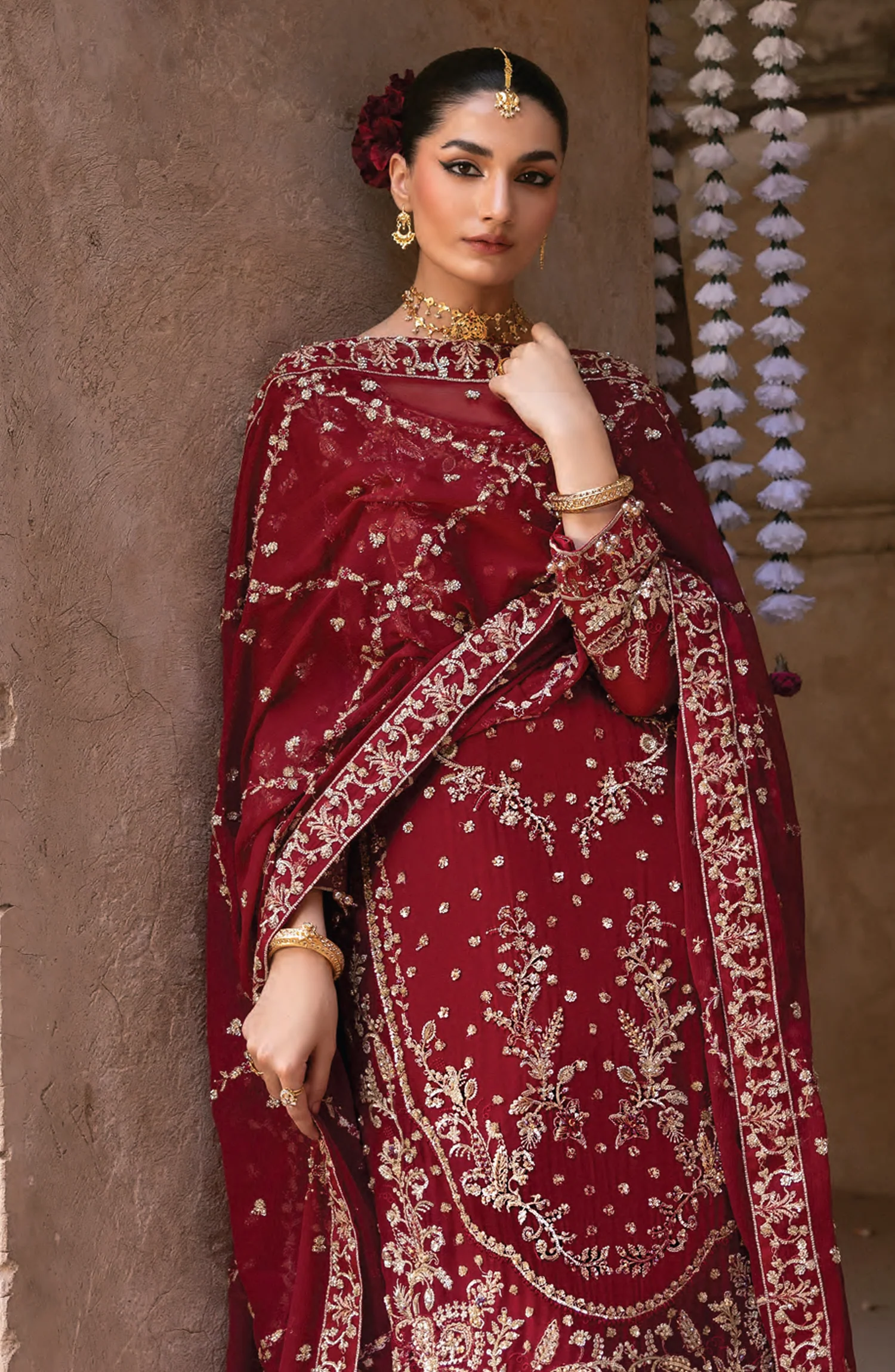 Chiffon Embroidered Sleeves.