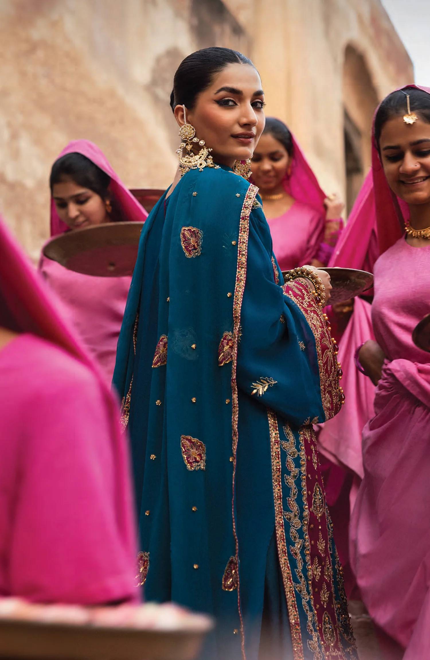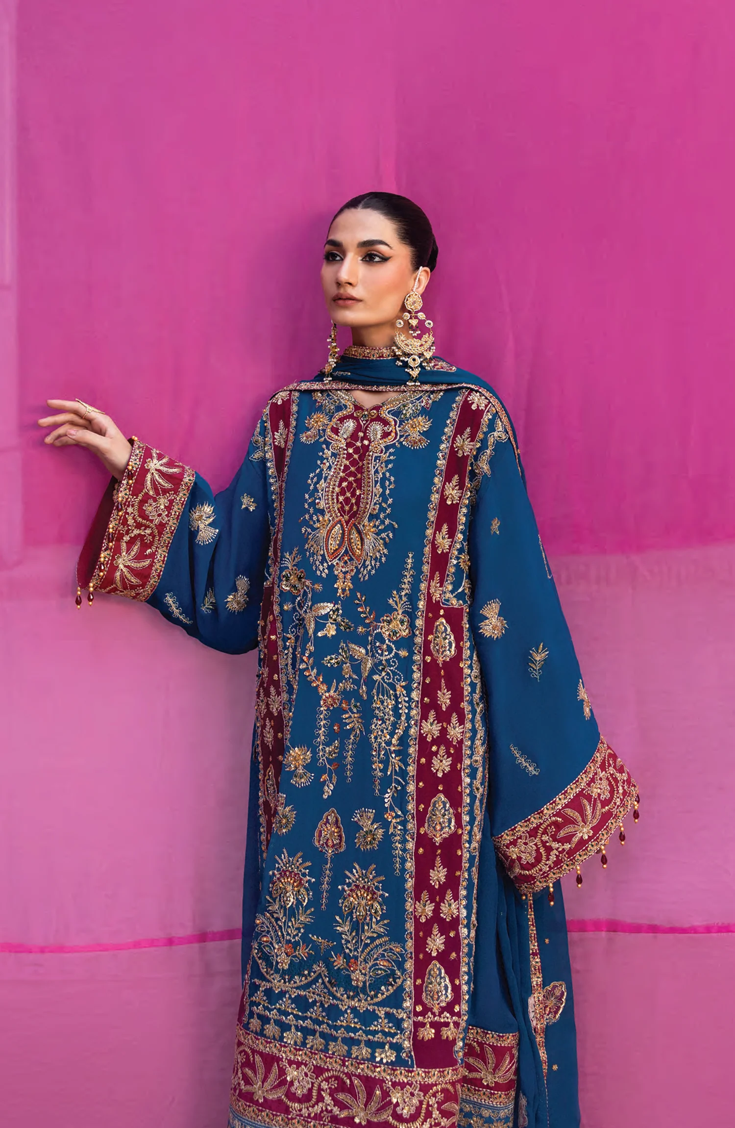 Chiffon Embroidered Sleeves.